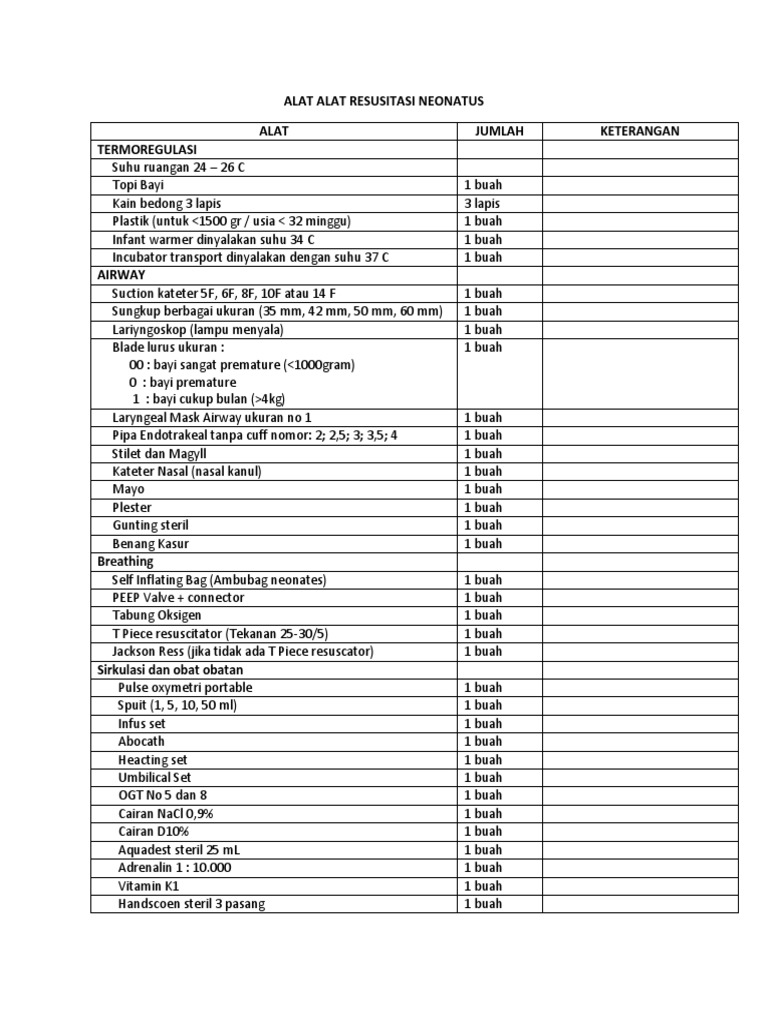 Etika dalam melakukan resusitasi dan kerjasama tim. Jual beli online aman dan nyaman hanya di Tokopedia. Persiapan Alat Resusitasi Sebelum menolong persalinan selain peralatan persalinan siapkan juga alat-alat resusitasi.